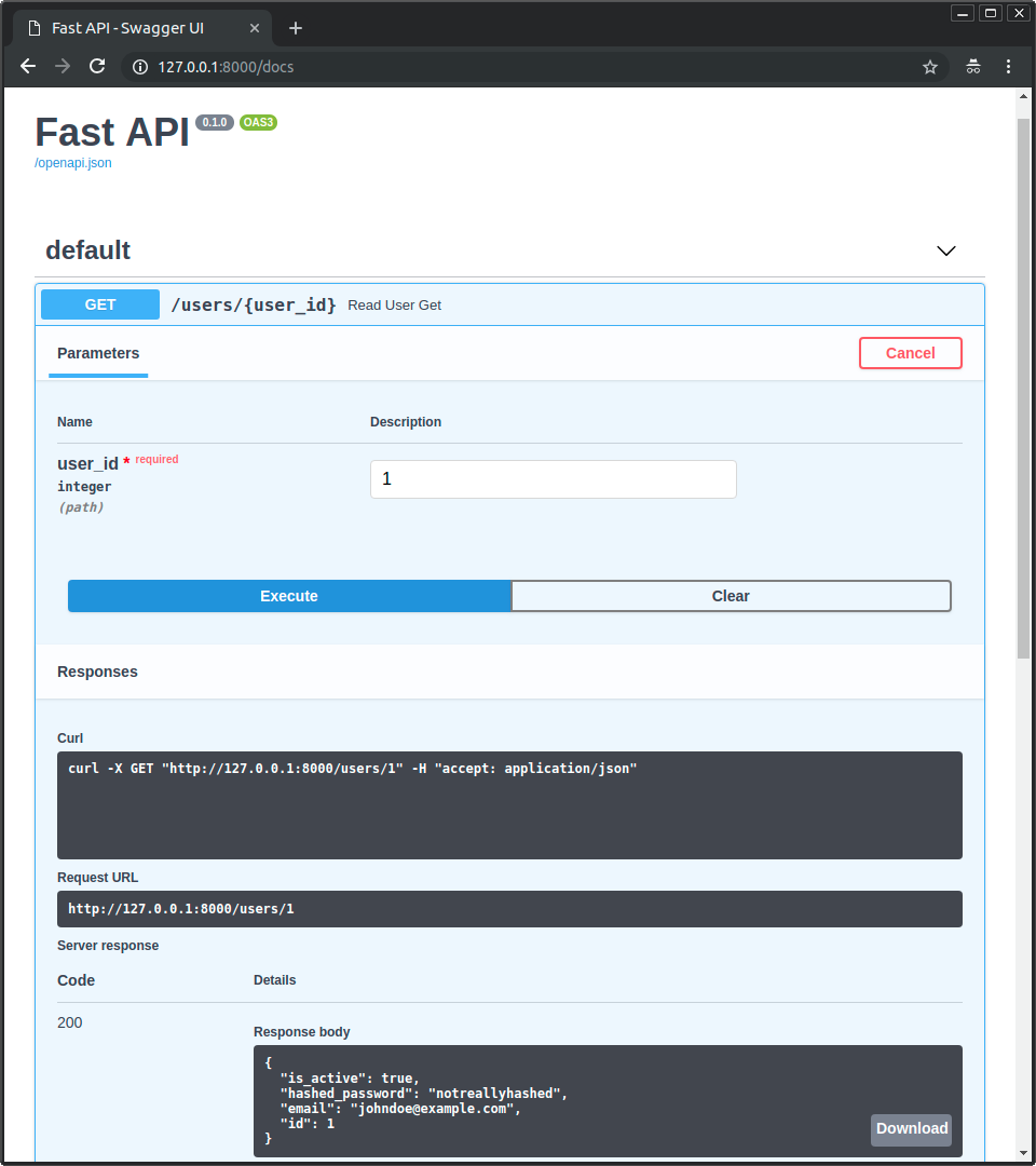 您将能够与您的FastAPI应用程序交互,从真实数据库中读取数据: